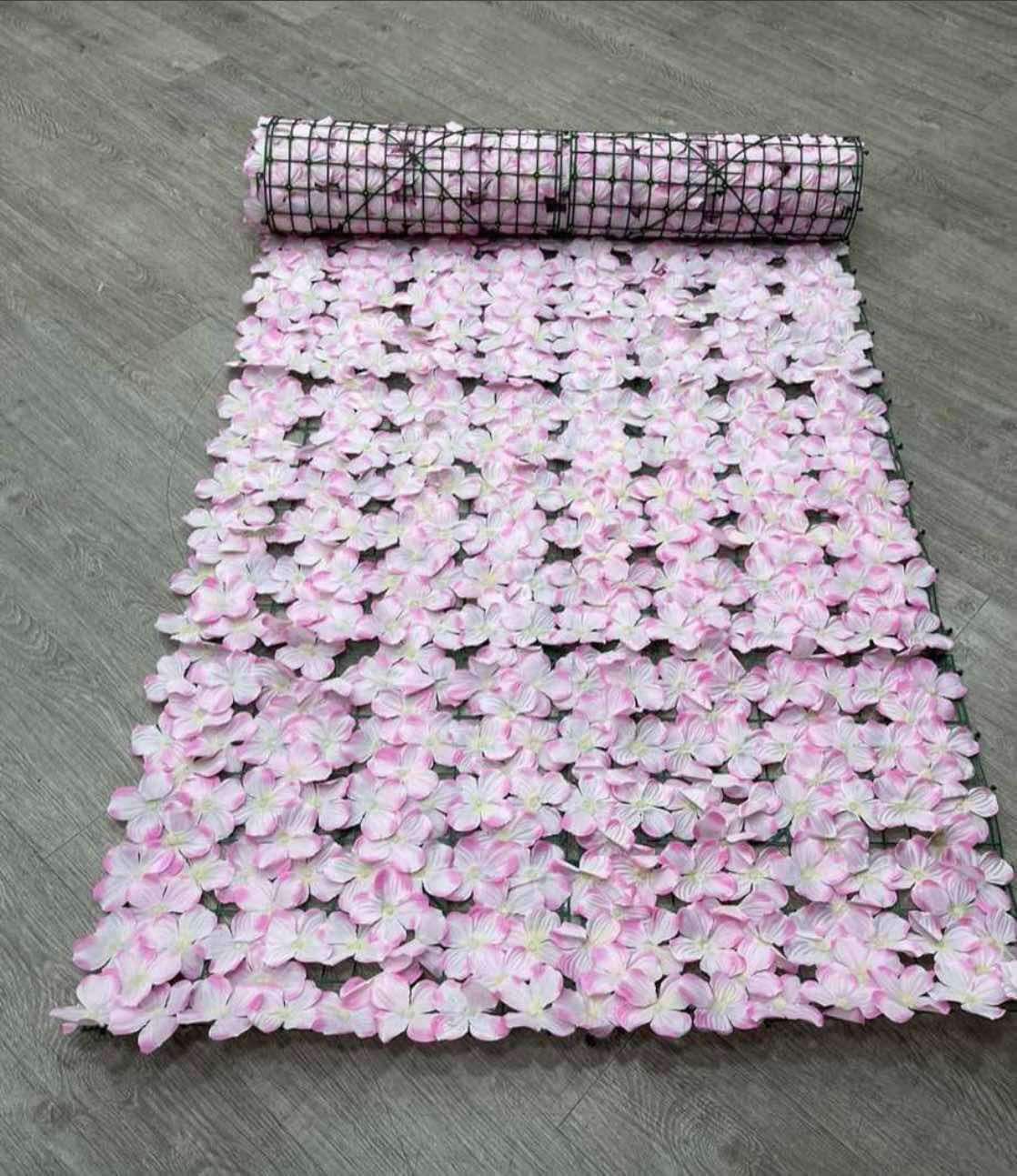 Rollo de flores artificiales de 1 metro de ancho por tres metros de largo, blanco,rosado y rojo valen